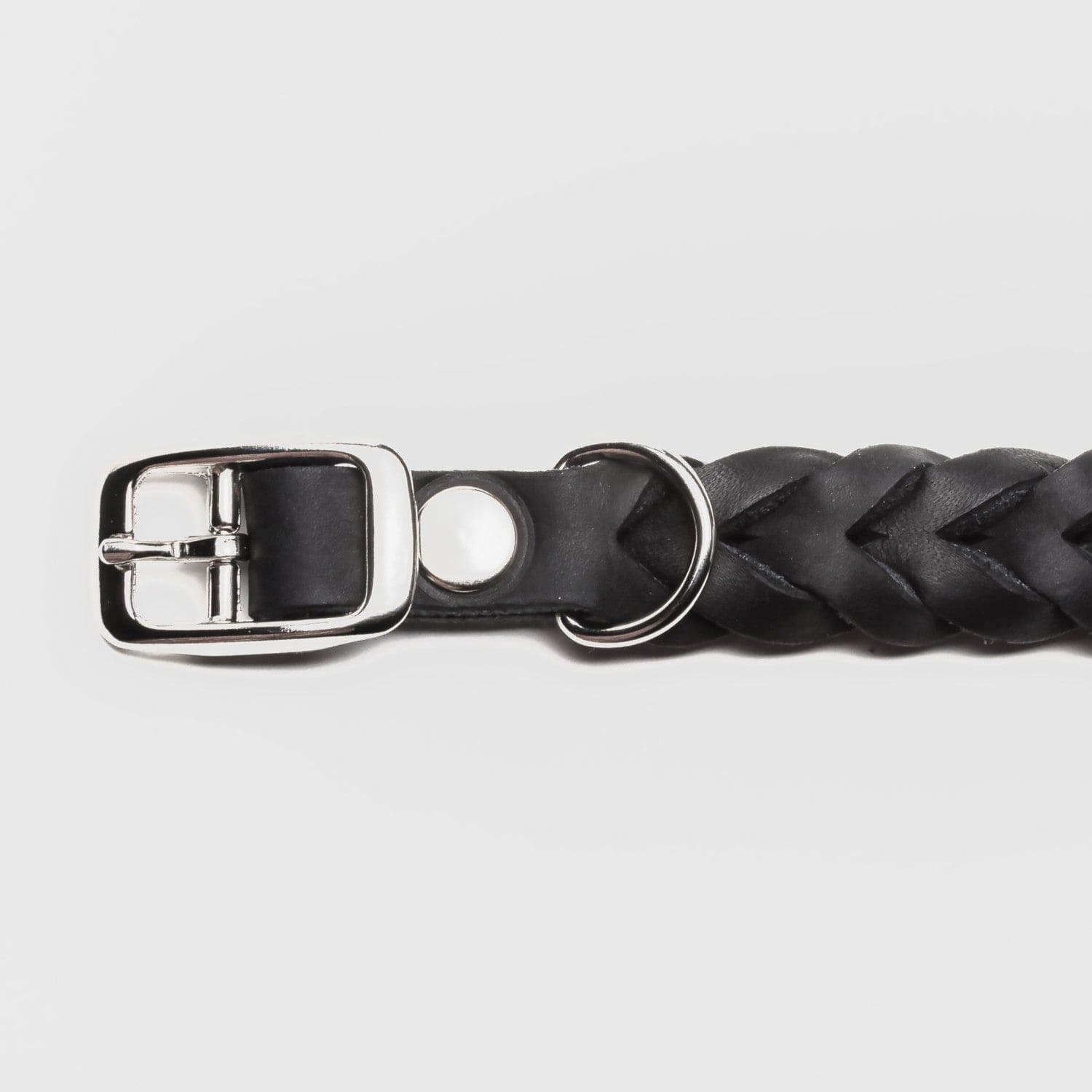 Den flettede stil giver dette hundehalsbånd et raffineret look, og over tid udvikler læderet en smuk patina.