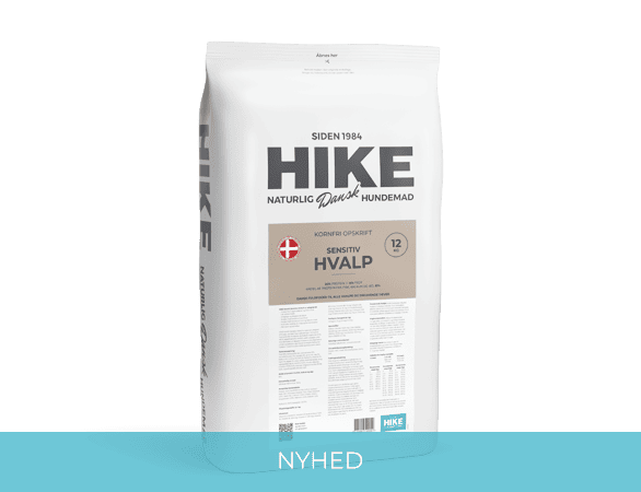HIKE Kornfri Sensitiv HVALP er sammensat uden kylling, ris, majs og kornprodukter.