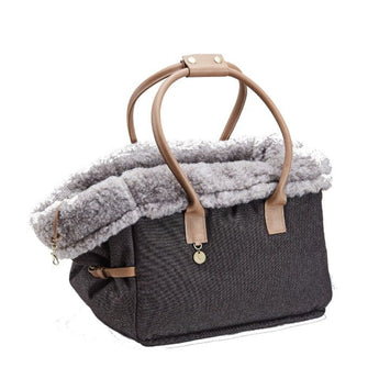 Den bløde indsats af uld kan tages ud og bruges som hundesovepose, og en indbygget sikkerhedsnor med karabinhage, forhindrer at hunden kan hoppe ud af tasken.