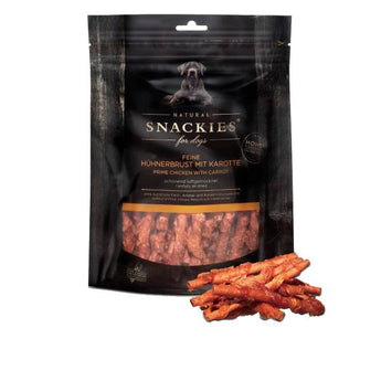Lufttørret kyllingebryst med gulerødder er en sund og nærende godbid til hunden. Snackies godbidder er uden konserveringsmidler og er altid produceret uden kunstige smagsstoffer og farvestoffer.