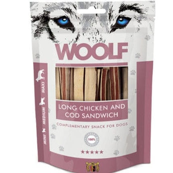 Woolf Chicken & Cod Sandwich Long er uden kunstige tilsætningsstoffer, konserveringsstoffer eller farvestoffer.