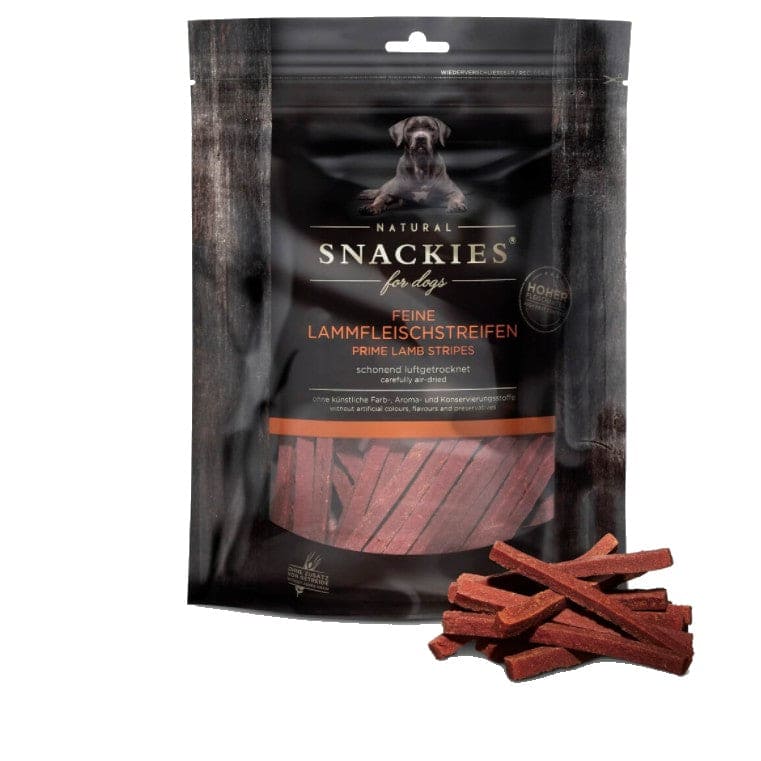Velsmagende strimler af lufttørret lammekød i strimler. Denne lækre hundesnack har et højt indhold af lammekød der er produceret i tyskland og er desuden rig på både råprotein og har et forholdsvis lavt fedtindhold.